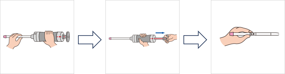 - ”検知管をセット→ハンドルをひく→読む”の簡単操作でその場で短時間に測定が可能