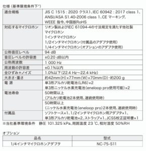 音響校正器NC-75(仕様)(リオン)